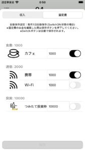 ペンシルアイコンをタップしていただくことで収入と固定費の自動化設定画面に遷移することができます。