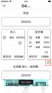 3. 収入固定費の削除機能(ホーム画面)